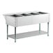 Keep all of your menu items piping hot and readily available with the Advance Tabco HF-4E-240 four well electric open well steam table! This powerful warming and holding unit can hold four 12" x 20" food pans full of pasta, meat, or other delicious foods in each well.This unit has a top made from 20 gauge type 302 stainless steel with die stamped pan openings, plus a body made from 22 gauge type 430 stainless steel. The sturdy legs are made with 1 5/8" diameter tubular galvanized steel, and adjustable bullet feet will accommodate different types of floors.