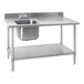 Utilize the space in your kitchen with this dependable 30" x 60" 16 gauge, type 304 stainless steel commercial work table from Advance Tabco! This unit is perfect for completing all kinds of daily tasks including chopping up vegetables, pressing hamburger patties, and boxing up baked goods. Thanks to the 12" deep sink, you'll be able to wash, rinse, or sanitize whatever you need. It also features an 18 gauge stainless steel undershelf to provide additional space for storage.
