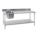 Utilize the space in your kitchen with this dependable 30" x 72" 16 gauge, type 304 stainless steel commercial work table from Advance Tabco! This unit is perfect for completing all kinds of daily tasks including chopping up vegetables, pressing hamburger patties, and boxing up baked goods. Thanks to the 12" deep sink, you'll be able to wash, rinse, or sanitize whatever you need. It also features an 18 gauge stainless steel undershelf to provide additional space for storage.