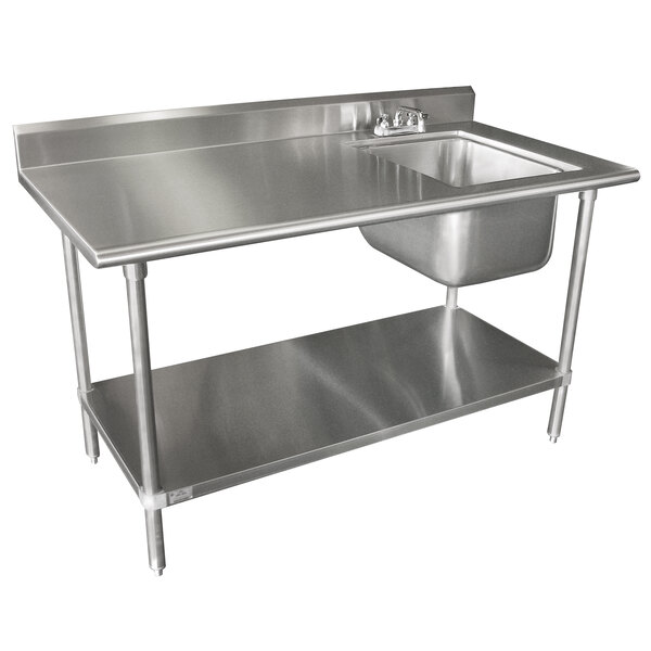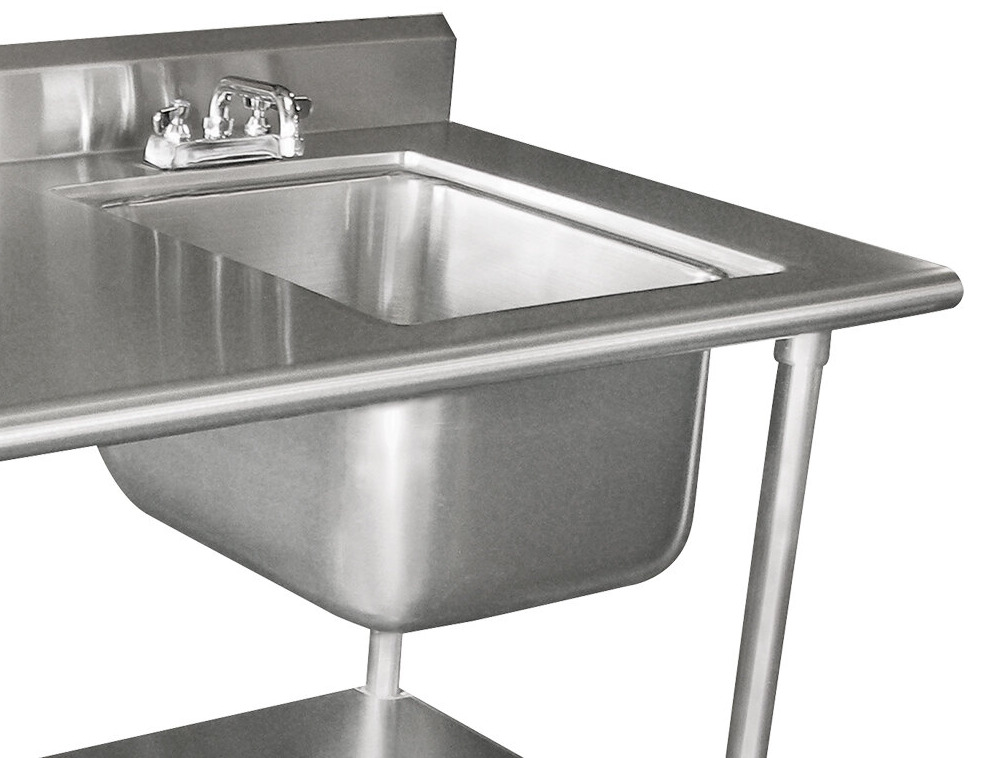 Utilize the space in your kitchen with this dependable 30" x 72" 16 gauge, type 304 stainless steel commercial work table from Advance Tabco! This unit is perfect for completing all kinds of daily tasks including chopping up vegetables, pressing hamburger patties, and boxing up baked goods. Thanks to the 12" deep sink, you'll be able to wash, rinse, or sanitize whatever you need. It also features an 18 gauge stainless steel undershelf to provide additional space for storage.