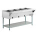 Made of stainless steel, the body and 8" deep liners of this food table are durable and easy to clean, and the galvanized steel legs come with adjustable plastic bullet feet. This food table also boasts a galvanized steel undershelf that's easy to assemble and adjust as needed. It's great for storing ingredients, serving utensils, and other serving essentials.