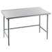 The Advance Tabco TFAG-243 Super Saver 24" x 36" open base stainless steel commercial work table with 1 1/2" backsplash provides a sturdy, durable work area for any commercial kitchen. It features a 16 gauge type 430 stainless steel top with a rolled front edge and square sides. The legs and leg braces are made of galvanized steel, with plastic bullet feet. This Advance Tabco work table's top is able to support up to 312 lb. of uniformly distributed weight.