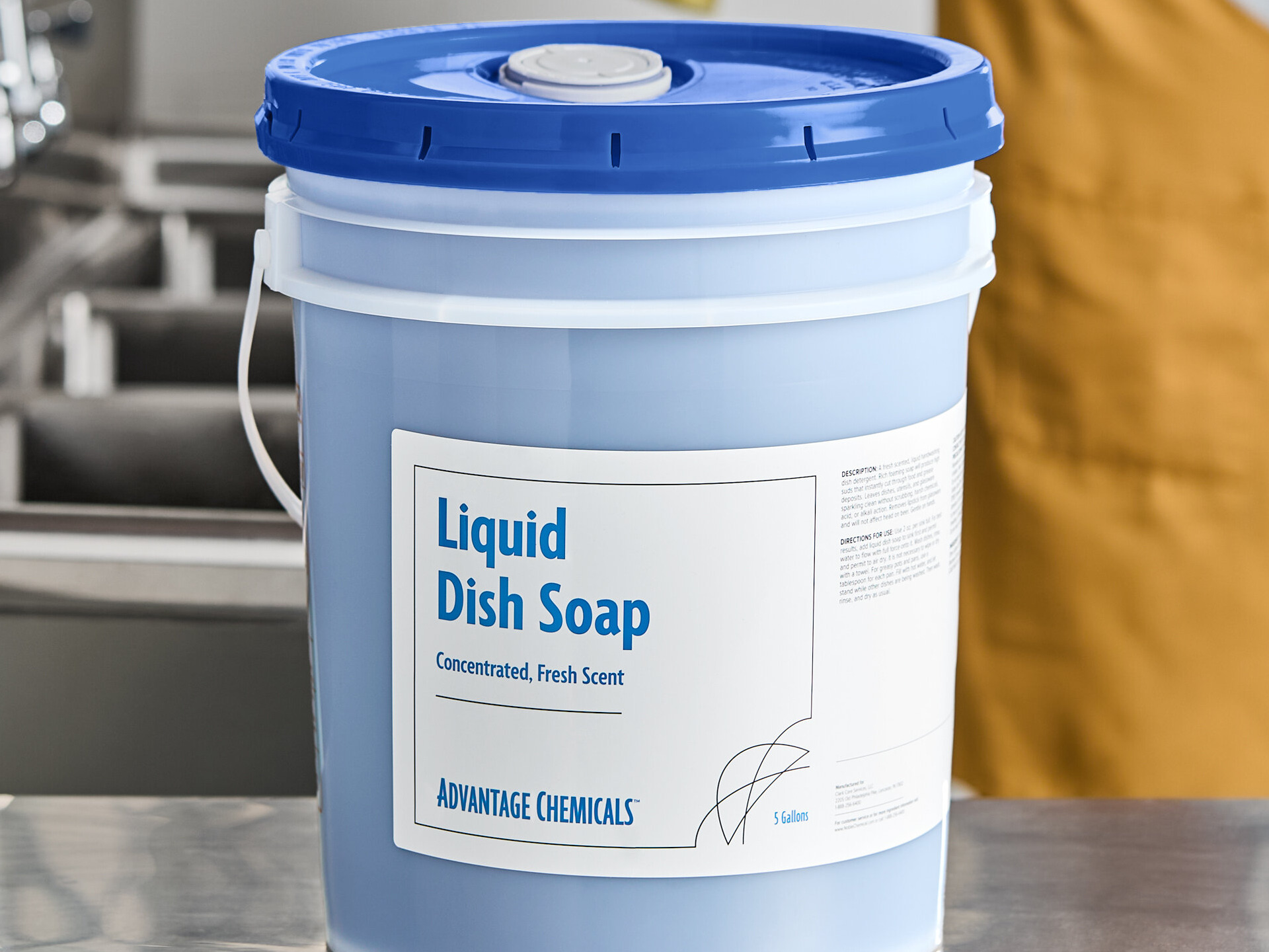 Buying liquid dish soap in bulk helps save money and ensures that your establishment is always fully stocked. With an easy-to-use storage container and directions included on the back, you can make the most of this product to keep your dishes clean. Great for busy kitchens, this Advantage Chemicals is tough on grease!