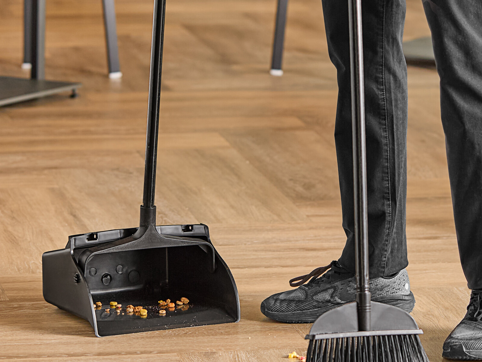This dustpan is made of strong polypropylene for long-lasting daily use and works best when paired with a boom (sold separately). The 31 1/2" handle is constructed of durable steel and is designed to withstand the rigors of daily use, making it a perfect addition to your daily cleaning regimen.