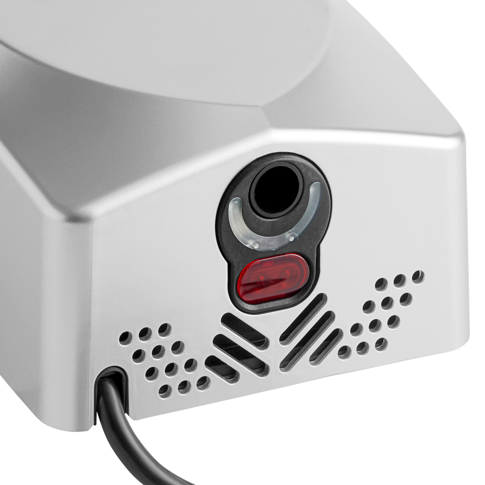 This hand dryer boasts hands-free activation thanks to its automatic infrared motion sensor, which includes an adjustable sensitivity range of 2" to 5 15/16" (5 cm to 15 cm). This allows you to adjust the sensor's detection range to suit your space and usage needs. The blue LED light at the bottom of the dryer helps indicate the correct hand placement for activation.