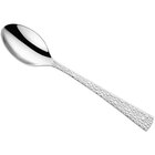 Create a versatile and attractive table setting with this Amefa Livia Ronda 7 3/16" 18/10 stainless steel extra heavy weight dessert spoon. The Livia Ronda line features a hammered handle that hides fingerprints and adds a unique, contemporary touch to your tabletop display. This flatware is designed to resist corrosion and maintain brilliance over repeated industrial wash cycles. Its mirror polished finish offers a sleek, professional appearance yet doesn't take the focus away from your perfectly plated culinary creations.
