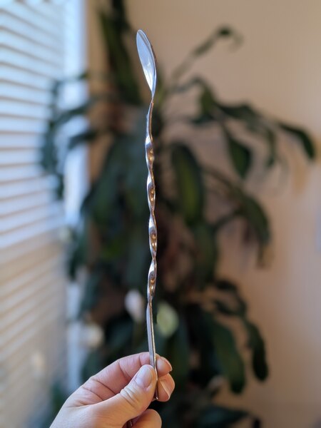 This stainless spoon works just as it should. Its a really nice look at the bar. We also used it for cocktail kits to sell during the COVID shutdown... very cost effective