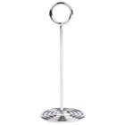 Enhance your dining ambiance with the American Metalcraft card holder! Crafted from durable stainless steel, this card holder is built to withstand the demands of daily use in busy foodservice environments. Its eye-catching swirl base adds a touch of elegance to your table settings and provides a stylish platform for displaying table numbers, identifying buffet items, or showcasing wine lists. With a height of 6", this card holder offers ideal visibility for your guests, ensuring that important information is easily seen and accessed.