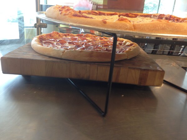 Purchased these pizza stands for my restaurant. It looks bigger then what I was expecting. Made well, heavy duty ones. However be careful cause 14" pizza pan would slide through easily
