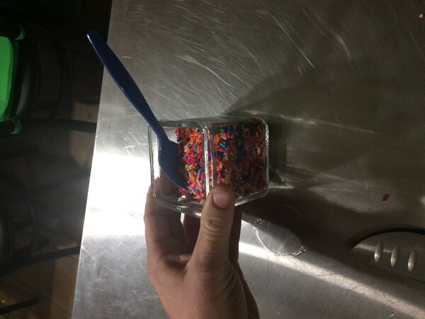 This American Metalcraft 8 ounce glass condiment holder is pretty cool we filled it with nerds and put it on the counter just so it would look nice I really like it
