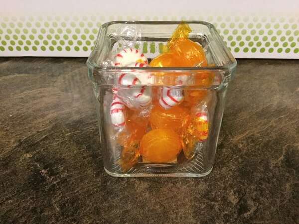 The square condiment jar also works well for small candles. The glass is thick and the price is just right. This jar could be used for condiments, candy or even office supplies.