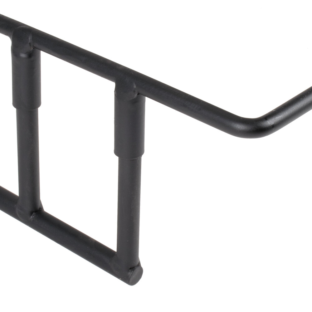 When space is of the essence, ensure that your creations aren't forgotten or overlooked by displaying them on this rectangular display stand! With three tiers made from black, wrought iron, this unit is the perfect combination of style and function and is sure to elevate your pastries, hors d'oeuvres, or finger sandwiches to the attention of all of your hungry guests and customers.