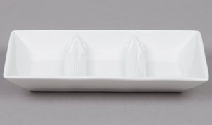 This porcelain sauce dish with three compartments is great for serving three different types of sauce or put chips in one compartment and sauces in the other two.