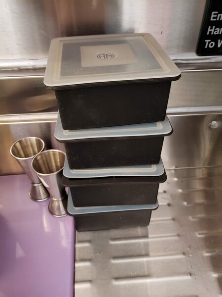 Ships free withEnsure your offerings are always precise and creative with this American Metalcraft SMSC4 black silicone 4 compartment 2" cube ice mold with lid! Made of high-quality silicone, this mold is flexible to easily remove ice after freezing. Use it at your restaurant, bar, or cafe for a simple and cost-effective way to make ice for your guests' beverages. Featuring 4 identical indents, this mold allows you to form perfectly square food creations in no time at all. Plus, the included removable lid is great for transporting liquids before they are frozen without spilling and also allows for stackablity in the freezer.