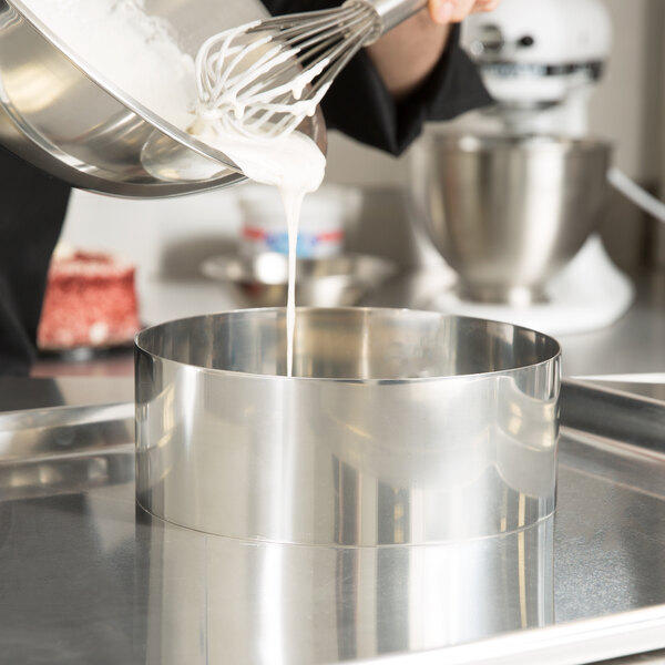 This cake ring features a durable stainless steel construction designed to withstand use in your commercial kitchen.
