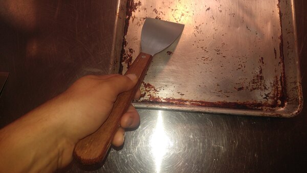 This scraper is a beast!!! I use one to clean the grill, another to scrape the floor. You can get both hands on the handle and can put some pressure on it. Sharpens easily and is sturdy, will be ordering more soon.