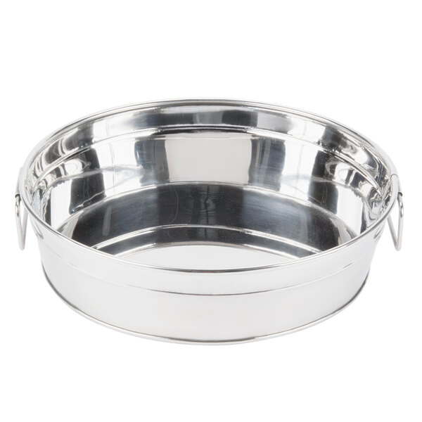 This round stainless steel metal tub is great for food preparation and presentation. The appearance fits our restaurant's rustic aesthetic as well. Helps the overall vibe of the appearance of our dishes.