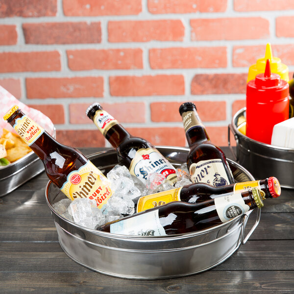 Durable and versatile, this metal tub is a must-have item for virtually any buffet or catered event. Not only is the stainless steel metal an eye-catching addition to the dining area, it makes the tub great for holding either hot or cold seafood, among plenty of other food products, beverages, and supplies. It easily adapts to the purpose at hand, giving you a reliable piece that's ready for whatever menu, venue, or event you have on the calendar!