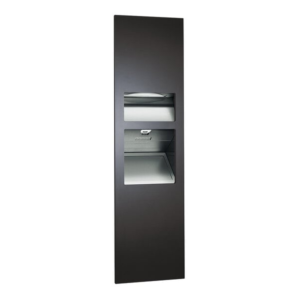 American Specialties, Inc. Piatto 10-64672-2-41 Recessed Paper Towel Dispenser with Automatic High-Speed Hand Dryer, Waste Receptacle, and Black Matte Phenolic Door - 208 / 240V