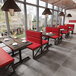 Enhance the aesthetic and functionality of your dining space with the American Tables & Seating 47 1/2" long black metal double booth with bright red vinyl. Crafted with a sturdy metal frame, this booth is built to withstand frequent use in bustling commercial environments. The modern bright red color effortlessly complements various interior styles, making it a versatile addition to your establishment. The vinyl upholstery not only provides comfort for your patrons but also ensures easy cleaning and maintenance, allowing for quick turnaround times between customers.