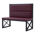 Enhance the aesthetic and functionality of your dining space with the American Tables & Seating 47 1/2" long black metal single booth with mocha vinyl. Crafted with a sturdy metal frame, this booth is built to withstand frequent use in bustling commercial environments. The modern mocha color effortlessly complements various interior styles, making it a versatile addition to your establishment. The vinyl upholstery not only provides comfort for your patrons but also ensures easy cleaning and maintenance, allowing for quick turnaround times between customers.