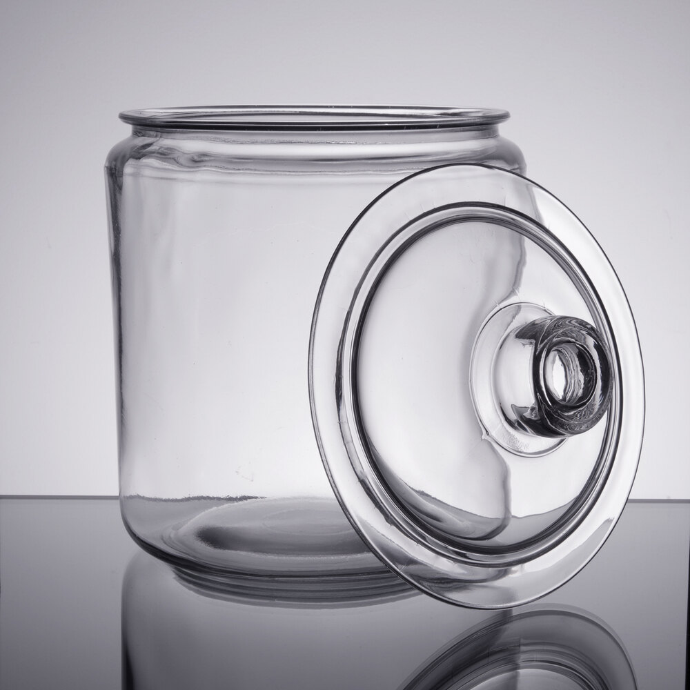 Anchor Hocking 1 gallon jar w/lid (requesting makers of this brand to make clear seals for these jars) (4 stars) pros: great organizing choice, looks wonderful, user friendly (big with wide mouth) (one star LESS) cons: no seal for freshness
