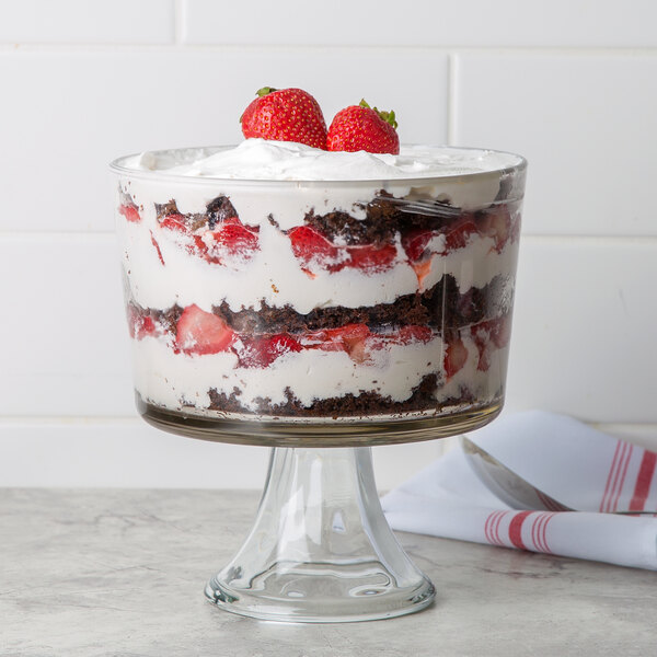 This clear, round bowl is perfect for displaying layered desserts and eye-catching side dishes. With an opportunity to present your most creative and colorful foods and desserts, this trifle bowl is an excellent addition to any glassware collection.