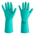 For reliable protection in a variety of applications, choose these Ansell AlphaTec® 37-300 12" green 8 mil unsupported reversed lozenge grip nitrile gloves. These gloves are made from unsupported 8 mil nitrile-butadiene rubber for optimal tactility and dexterity. They have a reversed lozenge finish for a secure grip, and they are built for superior durability and protection. The engineered fit allows these gloves to be used on their own or as an over-glove. Plus, they feature a long cuff to protect your forearm.