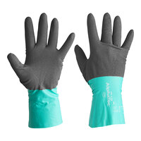 For reliable protection in a variety of applications, choose these Ansell AlphaTec® 58-009 12" green 11 mil unsupported raised diamond grip nitrile gloves. These light-duty gloves are made from unsupported 11 mil nitrile-butadiene rubber for optimal durability, flexibility, and protection. They have a raised diamond finish for a secure grip, and they are built for superior tactility and dexterity. The engineered fit allows these gloves to be used on their own or as an over-glove. Plus, they feature a long cuff to protect your forearm.