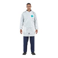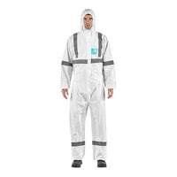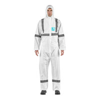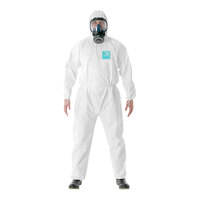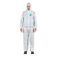 Keep employees protected with this Ansell AlphaTec® 68-2000 Model 107 white microporous polyethylene coverall with hood and anti-skid boots. This coverall offers advanced protection against low concentration liquid chemicals and liquid and particulate biological hazards. It is also compliant with EN 14126 and ASTM F1670/1671 requirements for protection against bloodborne pathogens. It is constructed of durable microporous polyethylene laminate that offers superior breathability to prevent heat stress. This coverall is anti-static as tested to EN 1149-5 and AATCC 76 standards, and it is low linting to reduce the risk of cross contamination. It is also silicone-free for spray painting applications.