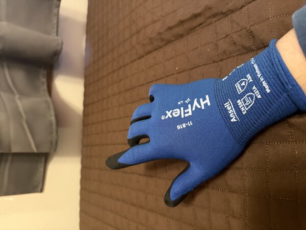 Enhance your workplace safety with the Ansell HyFlex® 11-816 blue nylon / spandex knitted gloves with black palm-coated foam nitrile and knit wrist. These gloves are designed for very sensitive handling, making them perfect for tasks that require precision and attention to detail. The FORTIX™ Abrasion Resistance Technology nitrile foam coating provides a perfect grip, ensuring that you can handle small parts and accessories with ease and accuracy. The knit wrist design offers additional comfort during heavy lifting, allowing for long-lasting use without sacrificing protection. Plus, its ERGOFORM™ ergonomic technology ensures optimal comfort and protection during heavy lifting and general handling tasks in warehouses and assembly operations.