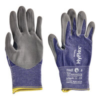 Enhance your hand protection with the Ansell HyFlex® 11-818 dark blue nylon / spandex knitted gloves with blue palm-coated foam nitrile and knit wrist. These gloves offer a "second skin" tactility with a light weight 18-gauge liner, providing you with the dexterity and flexibility needed for intricate tasks. The FORTIX™ Abrasion Resistance Technology nitrile foam coating ensures a perfect grip, making these gloves ideal for use in warehouses, while handling machinery, and working with equipment. The knit wrist and ZONZ™ Comfort Fit adds additional comfort for long-lasting use, making them suitable for heavy lifting tasks.