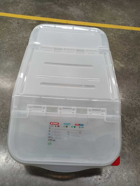 These bins are among the most affordable dry storage containers on this site. I had been using 10-gallon buckets to store flour, but those could not fit an entire 50lb bag at once and were difficult to fill without making a mess. These new bins are much larger and easier to load. The lids don't fit as tightly as I would like, so if you have issues with pests, these might not be for you. However, storing and retrieving flour is much easier with this sort of bin, as you do not need a prying tool like you would for a bucket. These fit nicely on wire shelves and come with labels and color-coded tabs.