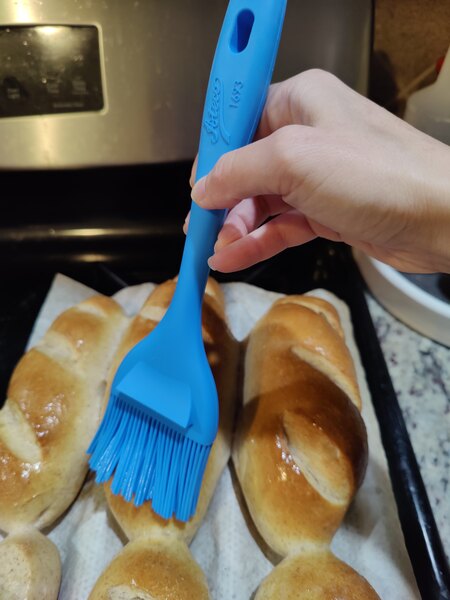 We LOVE this brush. It is so much wider than other brushes we've used before, and it makes our lives so much easier. We egg wash a lot of pastries in our bakery, and this durable brush has really cut down on our time. Not only is wider for better coverage, the bristles seem to hold egg wash better than other brushes, which means we spend less time dipping into the egg wash. We also use this for simple syrup, which we brush on babkas, right when they come out of the oven.