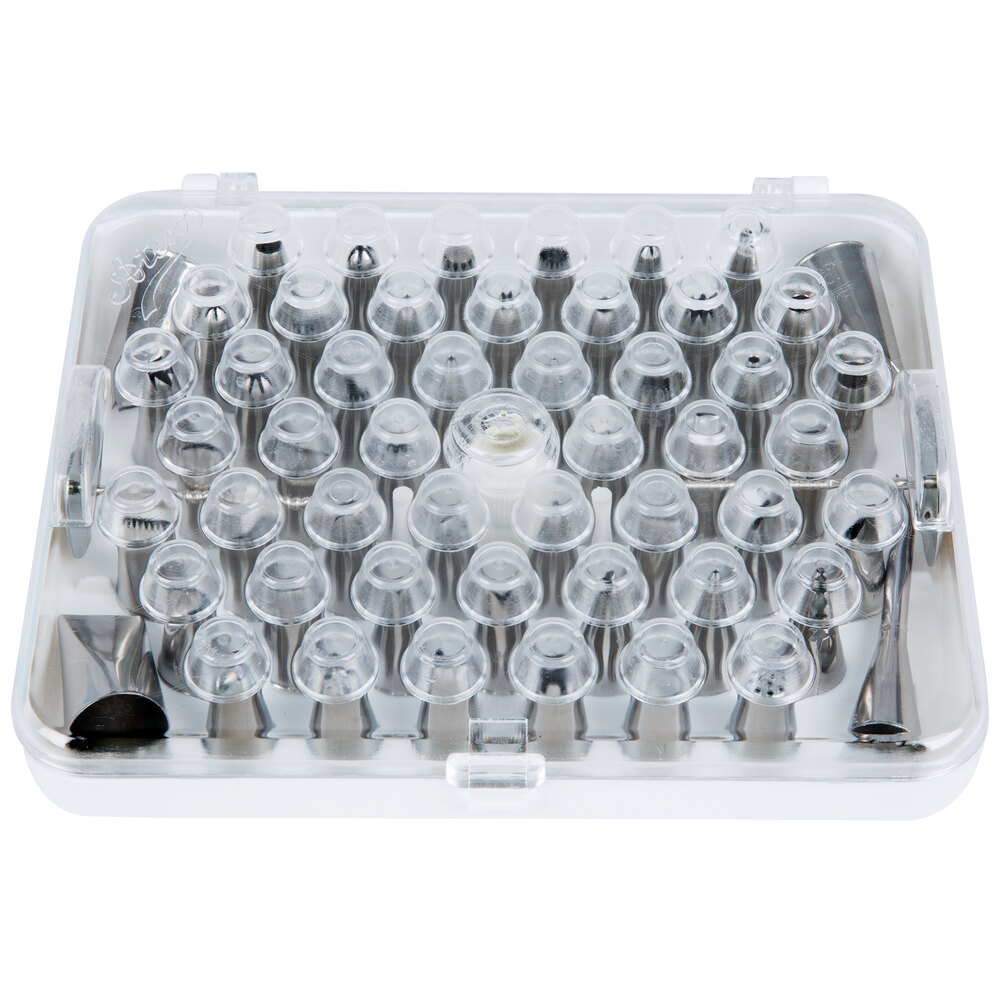 this product has great selection of piping tips, very easy to clean and keep organized.also great price for such a variety. overall very pleased with this purchase