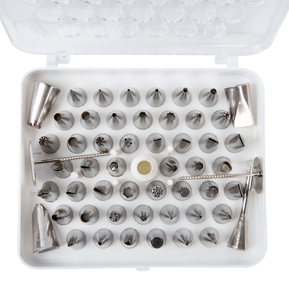 Good quality piping tips, and probably more tips than I will need but always good to have them all on standby. The storage case, however, could have been better made, hence the 4 stars. Mine arrived with a damaged storage case at the back hinge area. Webstaurant's customer service responded to my email very promptly and helped resolved it immediately. Super excellent customer service! Highly recommend buying all your needs from them. 5 Stars for customer service