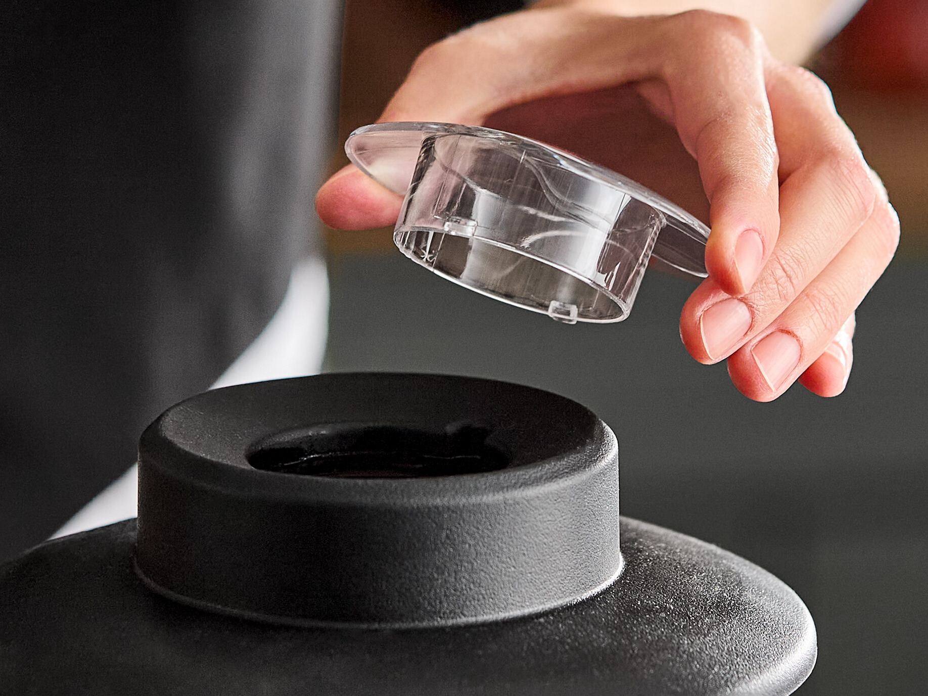 The 2-piece lid makes it possible to add ingredients at any stage in the mixing process. Simply remove the clear inner lid and push the ingredients down into the jar with the tamper.