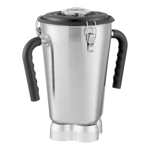 Made of durable stainless steel, this non-corrosive jar has what it takes to hold up to the wear and tear of a commercial kitchen. Its hefty 1-gallon capacity allows for large batches of sauces, dips, and smoothies, while the dual handles make it easy to transport and maneuver. Plus, clasps fitted on the jar lock down the lid, helping your staff to avoid any overflow and messes. The jar includes both the blade assembly and 2-piece lid.