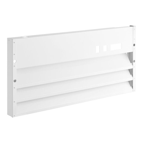 If your white refrigeration unit needs a new front grille, this Avantco 17811628 white front grille is just what you need to fix it! A commercial kitchen can put your equipment through a lot of abuse during day to day operations, and it's common for exterior parts like grilles and metal panels to become dented. If the damage is severe or if the grille has been pierced, you should replace it promptly since this component protects vital refrigeration system components in addition to shielding the control box from harm. If the vent slots are damaged you could also be restricting airflow or exposing the refrigeration system to dust and debris. It's compatible with Avantco GDC-23-HC white merchandiser refrigerators.