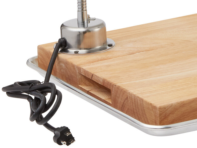 This lamp is great for use with carving stations at hotels, banquet halls, or catered events. It gives you a range of heating options thanks to its flexible body that may be lowered toward, or raised away from foods with ease. It also provides a clear view of what you're doing, which helps to ensure precise cuts when working on your delicious meats and other product.