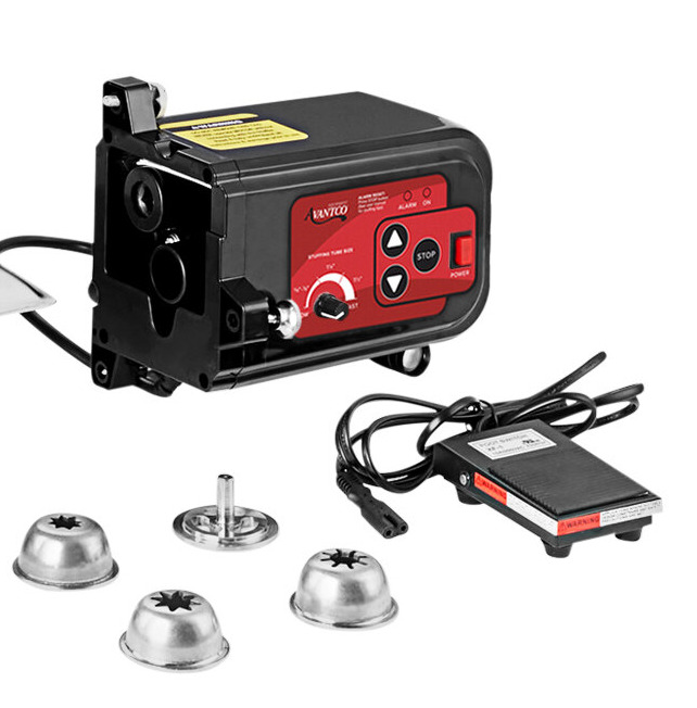 With variable-speed control, you can adjust the settings based on the texture and thickness of your churro mixture. The motor controls the direction of the churro and automatically reverses when it hits the bottom of the churro stuffer. The motor also includes a convenient foot pedal, allowing the operator to focus on forming the churro with their hands instead of manually operating the unit. This hands-free design promotes sanitation in your kitchen.
