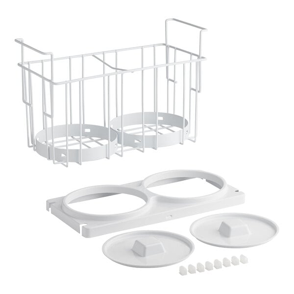 Avantco 36003594 2-tub holder kit is a direct replacement for the original part included with your Avantco ice cream dipping cabinet, or it can be used as an additional accessory. This kit includes a 2-tub holder basket with 8 bumpers to keep the tub from spinning as well as 2 white lids and a top cover. It's compatible with Avantco ADC-8, ADC-GEL-9, and ADC-12 series ice cream dipping cabinets.