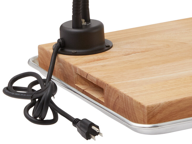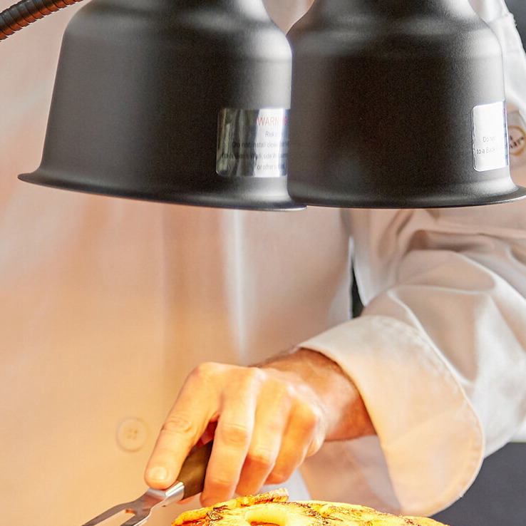 This dual-arm lamp is great for use with carving stations at hotels, banquet halls, or catered events. It gives you a range of heating options thanks to its flexible body that may be lowered toward, or raised away from foods with ease. Two separate arms allow for complete coverage! They also provide a clear view of what you're doing, which helps to ensure precise cuts when working on your delicious meats and other product.