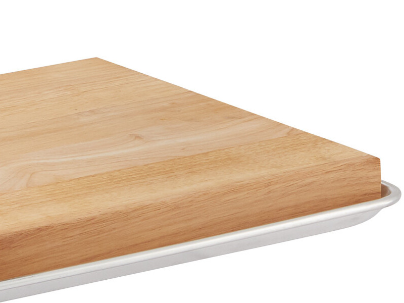 The cutting board, which is made from durable wood to resist deep scratches, is reversible for a longer service life. It is sturdy enough to be used with your biggest knives. At 24" long and 16" wide, you'll have plenty of space to work on.