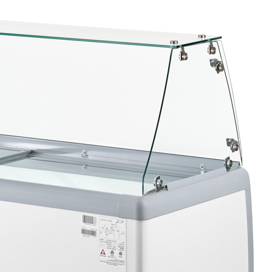 A sliding cover protects the ice cream while helping to retain cold air around the product for a safe holding environment. Because it slides open and closed, it's fast and easy to use as well, making it ideal for busy periods. The cover also comes equipped with a lid lock to ensure that your ice cream remains protected and temperature controlled.