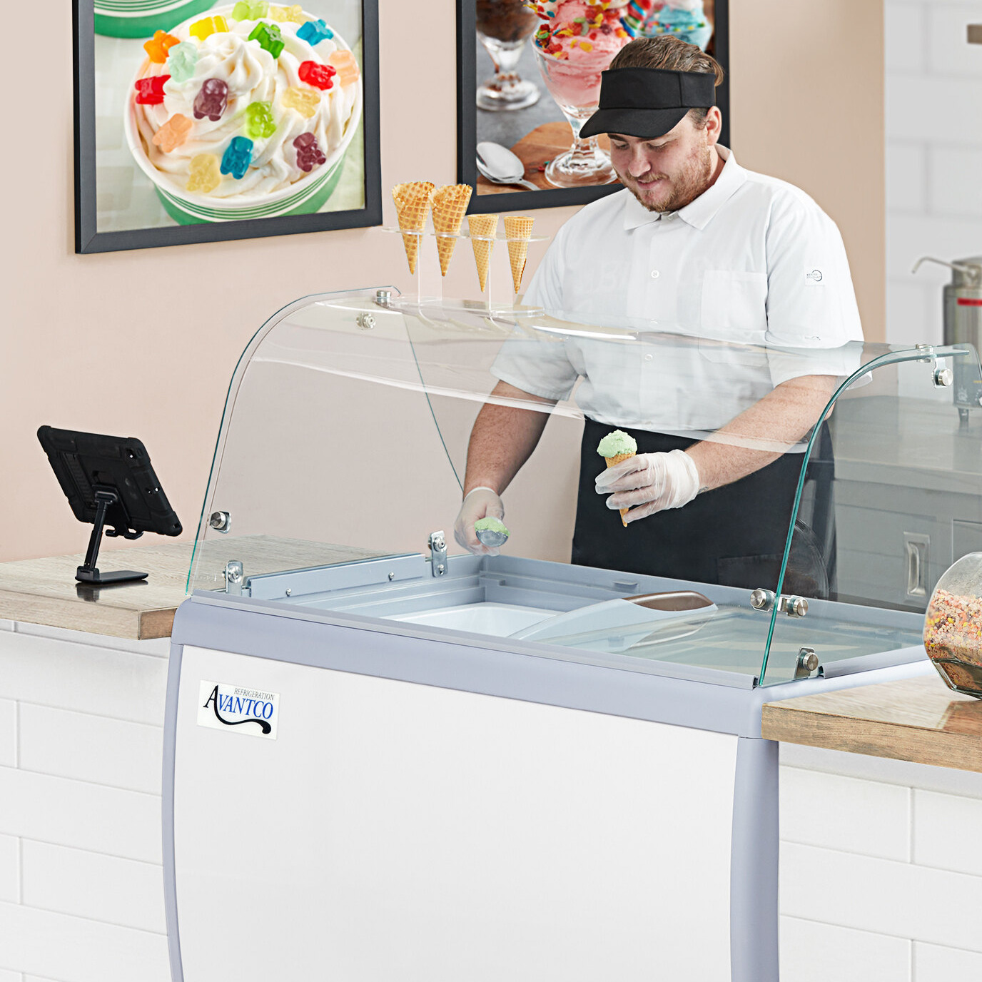 There was a knob missing from the temperature setting dial or I would have given a 5 star review. What We went ahead and did was order the more affordable ice cream dipping cabinet to replace our Gelato dipping cabinet. We repurposed the insert from our old cabinet and ,with a few modifications , have ourselves a Gelato dipping cabinet! It runs about perfect temperature when on highest setting-as Gelato likes a higher temp than does ice cream. After this, we also recycled our sneezeguard from the old unit by buying some 14 gauge "L" strips and drilling holes that matched the existing ones in the Avantco unit. after finding the correct size bolts and washers, we were able to affix the sneezeguard directly to the machine and save quite a bit of money in the process. Considering we received a blemished unit, I might've just ordered the one that was marked down due to blemishes but all in all we have a new gelato dipper... if you look around, that's a very good price after installation, delivery and all things considered.