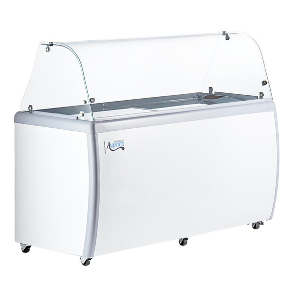 Display, merchandise, and serve a delicious variety of gelato flavors with this Avantco ADC-GEL-13C curved glass gelato dipping cabinet.