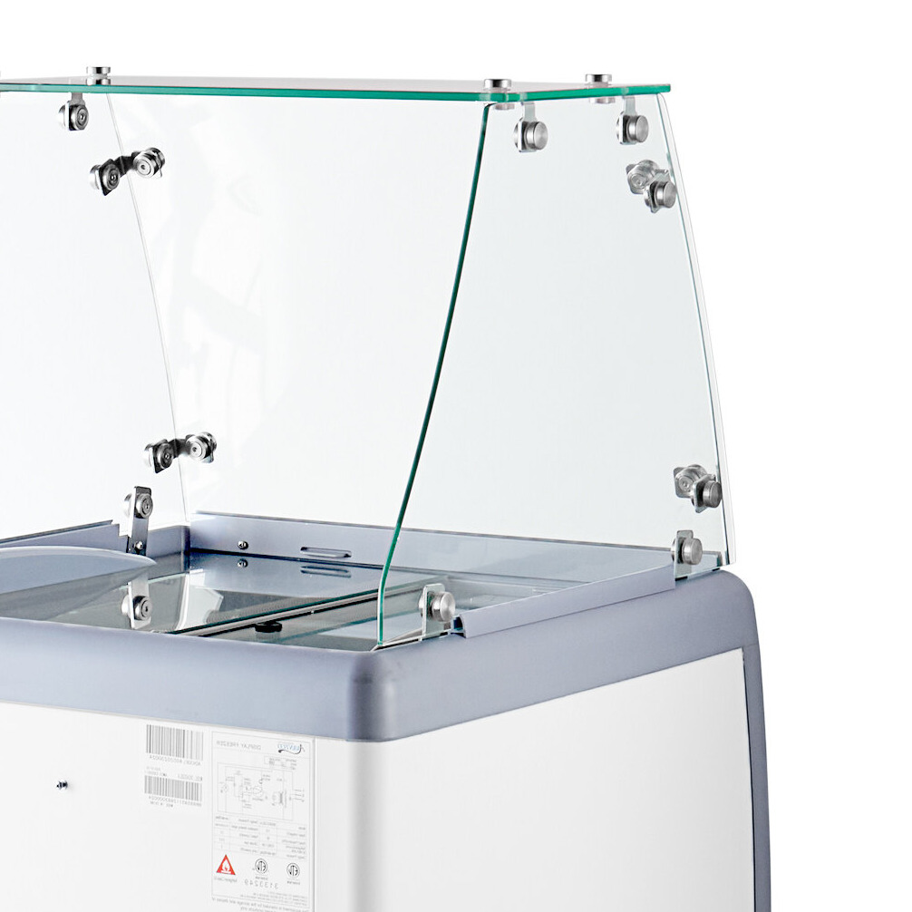 A sliding cover protects your product while helping to retain cold air around the product for a safe holding environment. Because it slides open and closed, it's fast and easy to use, too, which is perfect for those busy rush hours or constant streams of customers in the summer months! The cover also comes equipped with a lid lock to ensure that your ice cream remains protected and temperature controlled.