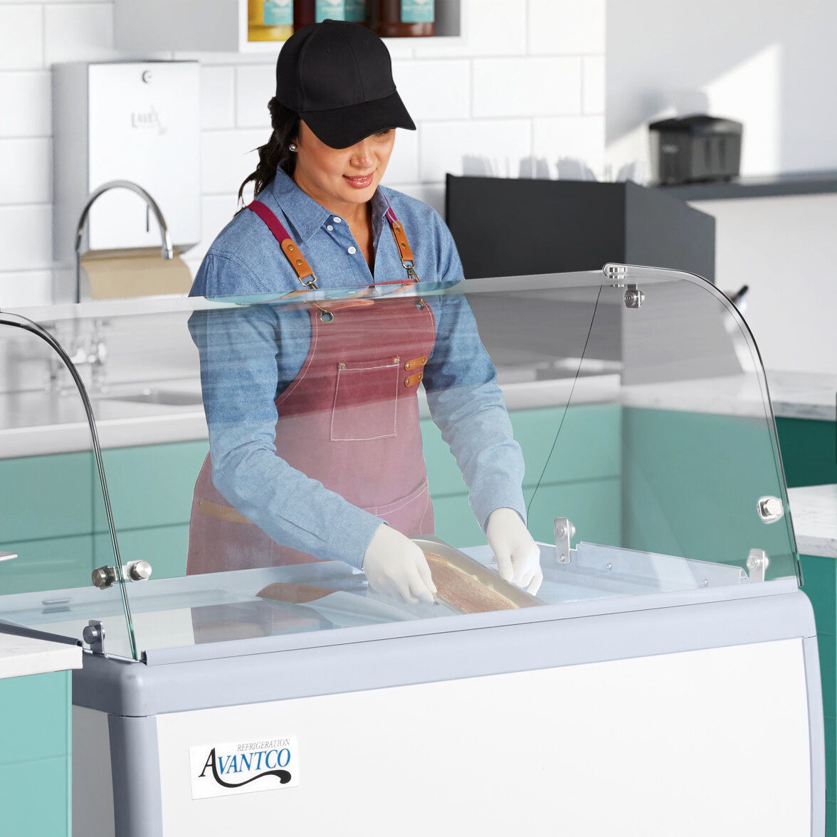 Avantco ADC-GEL-9C 49" Customizable Nine Pan Gelato Dipping Cabinet with Curved Sneeze Guard and Pans