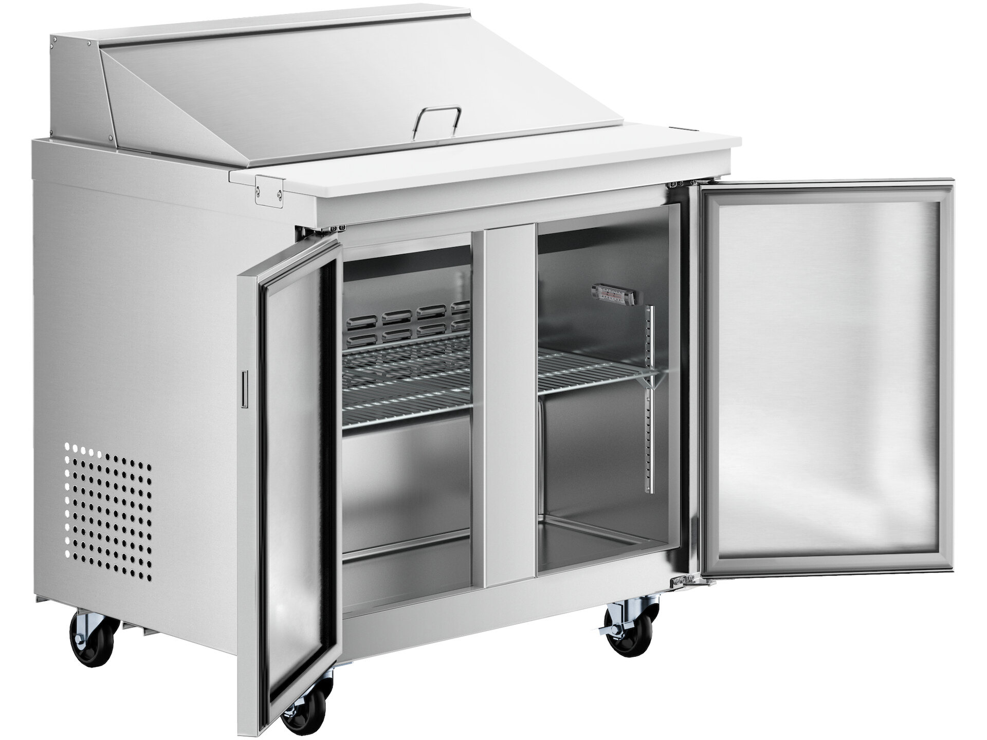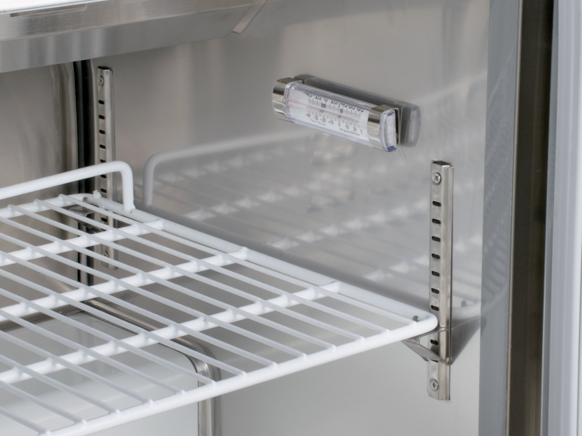 Beneath the workspace is additional refrigerated storage space that is great for storing back-up ingredients, such as deli meat, cheese, and toppings.